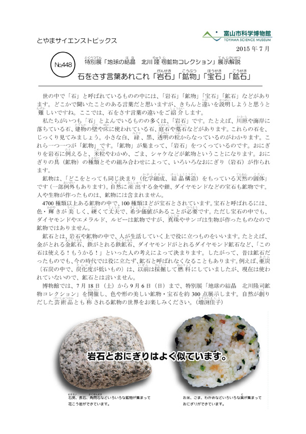 > No.448 石をさす言葉あれこれ「岩石」「鉱物」「宝石」「鉱石」