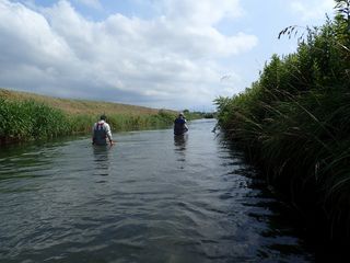上の画像の川とは、別の川。撮影場所より上流で水がせき止められていたので水量少なく、わき水の噴出が見えます。
