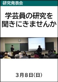 > 研究発表会「学芸員の研究を聞きにきませんか!」