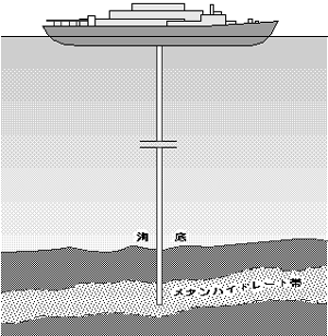 メタンは、燃えて炭酸ガスと水を生成するだけで、硫黄酸化物などの有害なガスを放出しないので、石油や石炭などに比べてクリーンなエネルギーであるといわれています。日本でも1995年から、石油に代わる次世代のクリーンなエネルギー資源として、日本列島周辺の海でメタンハイドレート鉱床を開発する政府と民間による共同研究が始められています。世界的にみて、利用できるメタンハイドレートは炭素換算で10兆トン以上という試算があります。これは、現在知られている石炭・石油などの全エネルギー資源の埋蔵量に相当します。