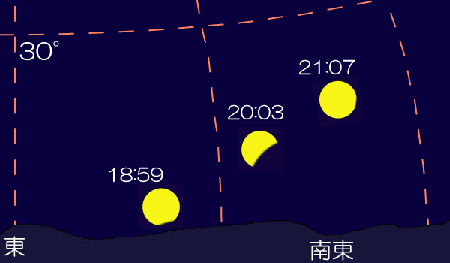 月出直後に食が始まりますから、富山からは全経過をみることは難しいと考えられます。